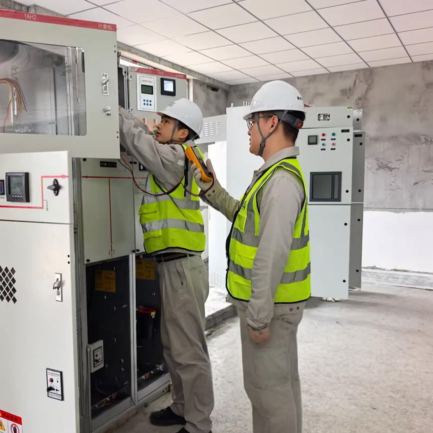 面對項(xiàng)目電氣調(diào)試前期持續(xù)的高溫“烤”驗(yàn),緊張的工期安排與廣闊的作業(yè)跨度,調(diào)試團(tuán)隊(duì)始終將安全與質(zhì)量置于首位?,F(xiàn)場工作人員規(guī)范穿戴全套防護(hù)裝備,嚴(yán)格執(zhí)行國家及企業(yè)安全規(guī)程,堅(jiān)持開展“三工活動”,試驗(yàn)每一個(gè)環(huán)節(jié)執(zhí)行標(biāo)準(zhǔn)作業(yè)流程,于崇山峻嶺間筑起了一道堅(jiān)實(shí)的安全試驗(yàn)防線,展現(xiàn)了試驗(yàn)人員高度的專業(yè)性和責(zé)任心,憑借嚴(yán)謹(jǐn)細(xì)致的工作,所有調(diào)試項(xiàng)目均通過檢測,為這條蜿蜒的“長龍”注入了穩(wěn)定可靠的“電力血脈”。